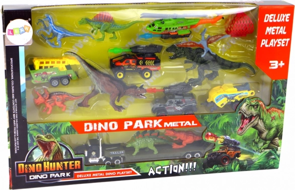 See kirju komplekt viib lapsed eelajalooliste ekspeditsioonide maailma. Kolm detailse teostusega haagistega sõidukit võimaldavad dinosauruseid maastikul hõlpsalt vedada, kahel autol on pöörlev tulistustorn lisadoosi põnevuse jaoks. Kopter paistab silma võimalusega asendada tulistaja transpordivõrguga ja dinosauruseid õhust turvaliselt teisaldada.