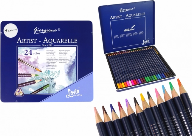 24 akvarellpliiatsi komplekt elegantses metallkarbis on suurepärane valik kõigile kunstihuvilistele. Iga pliiats on 17 cm pikk ja loodud pakkuma intensiivseid värve.