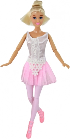 Blondid juuksed on seatud krunni ning liikuvad jäsemed võimaldavad seada balletipoose ja luua oma koreograafiaid.