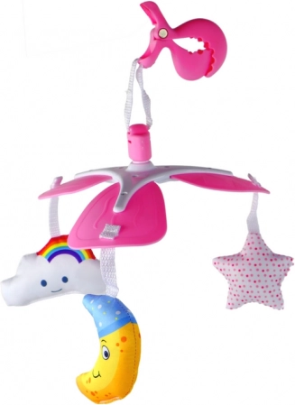 Rippuv klambriga karussell on praktiline ja kergesti kaasaskantav, võimaldades teie last lõbustada ja stimuleerida kõikjal ja igal ajal. Tänu spetsiaalsele klambrile saab selle hõlpsalt ja turvaliselt kinnitada võrevoodi servale, jalutuskäru külge või kandekoti rihmadele. Komplektis on kolm pehmet värvilist mänguasja – kuusirp, pilv ja täht –, mis köidavad lapse tähelepanu ja toetavad tema sensoorset arengut.