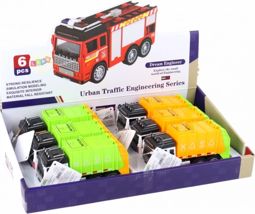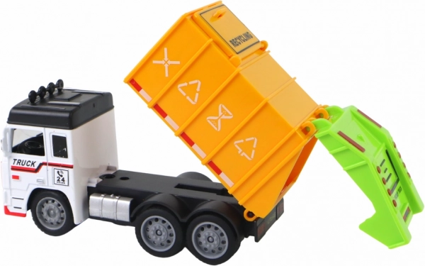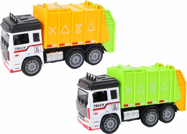 See detailselt viimistletud prügiveokomplekt pakub autentset välimust realistlike trükkide ja toimivate elementidega. Hõõrdeajamiga sõiduk hakkab kergelt liikuma pelgalt tõukest ning avatav haagis ja ülemine täiteava kutsuvad loovale mängule “prügi” kogumisel ja tühjendamisel.