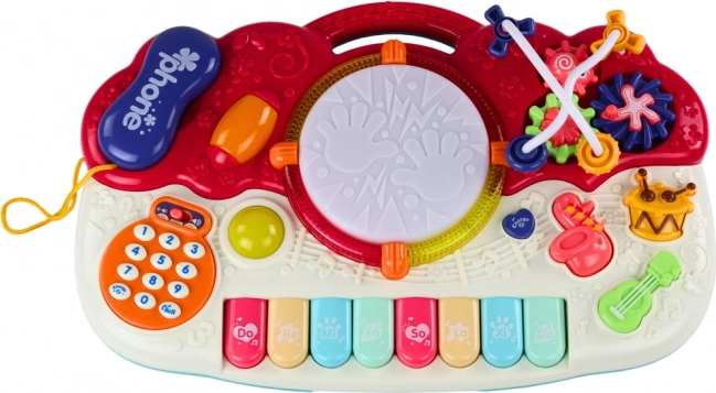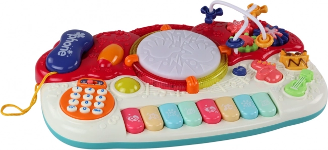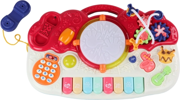 Sisaldab klaviatuuri, trummi, sisseehitatud telefoni ning muid erinevaid heli- ja valgusfunktsioone, mis arendavad laste muusikalist kuulmist.