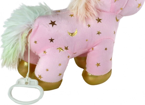 Armas meloodiaga kaisuloom-ükssarvik on ideaalne uinumiskaaslane. Tõmba lihtsalt nöörist ja käivitub õrn uneviis, mis loob rahuliku meeleolu. Pehme materjal, roosa värv koos kuldsete tähtedega ja turvaline teostus teevad sellest mänguasjast suurepärase ööabivahendi ja ka lastetoa dekoratsiooni. Komplektis on ka väike magav ükssarvik kaisukaaslaseks.