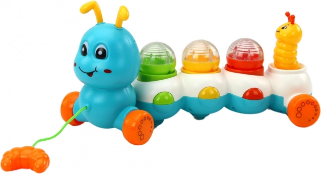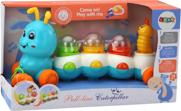 Värviline tõmmatav röövik ratastel koos nööriga võimaldab lapsel alustada mängu seda enda järel vedades, samal ajal rõõmsaid meloodiaid kuulates. See stimuleerib kuulmistaju ning arendab motoorseid oskusi röövikut tõmmates ja suunates.