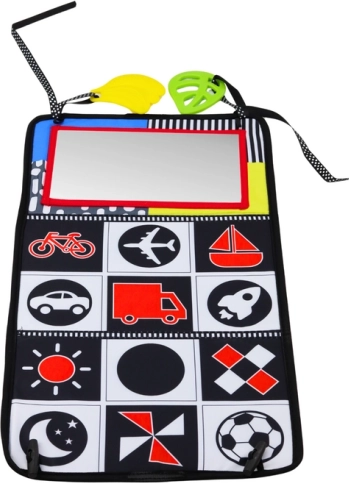 Komplektis on ka lehe- ja banaanikujulised närimisrõngad, mis aitavad hammaste lõikumisel ning julgustavad last avastama ja manipuleerima. Peegel köidab tähelepanu ja suurendab huvi ümbritseva maailma vastu, samal ajal kui pehme krabisev raamat pakub täiendavat meelte stimuleerimist.