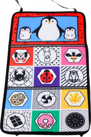 Matt sisaldab erksaid mustreid, mis toetavad visuaalset stimulatsiooni ja kontrastitaju arengut.