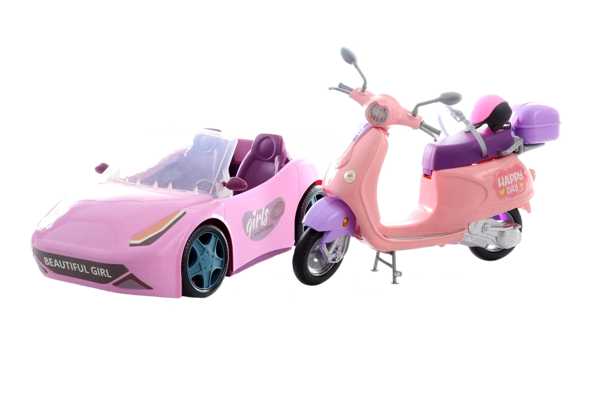 Roosa auto (33 cm), realistlik mopeed (30 cm) ja jalgratas (17 cm) võimaldavad nukkudel suunduda väljasõitudele, linna või parki. Neid on lihtne käsitseda ning need toetavad aktiivset mängu.
