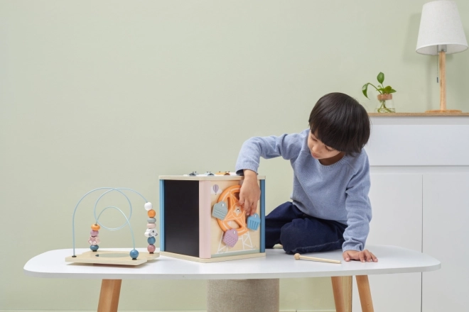 Sisaldab kujundisorteerijat, motoorset labürinti, peeglit, ksülofoni, kriiditahvlit ja palju muud.