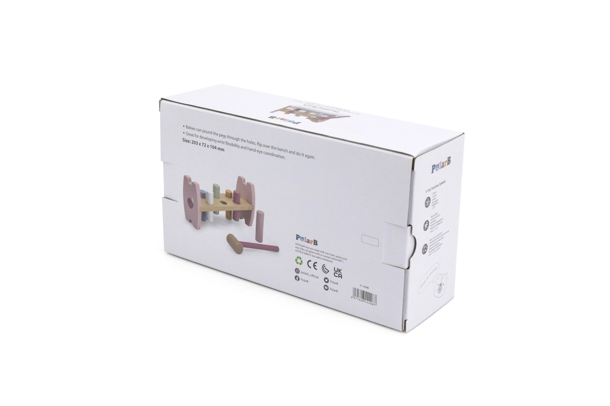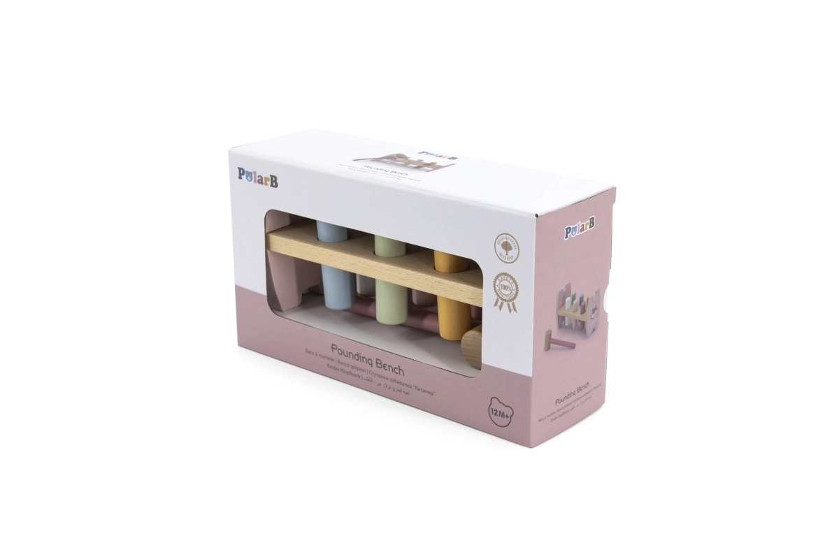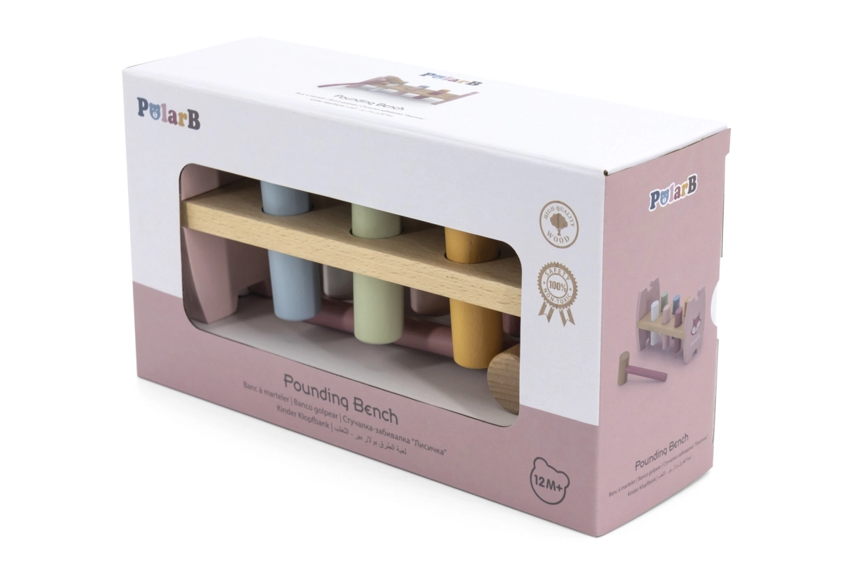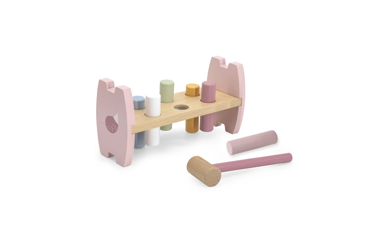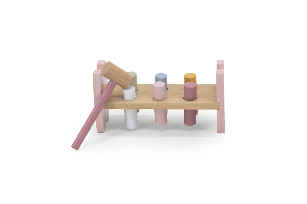 VIGA puidust toksimispink rõõmustab iga last. Pastelsete värvide ja kergesti haaratava haamriga motiveerib see mängule ning arendab ühtaegu liigutuste täpsust, osavust ja värvide eristamise oskust, mis tulevikus lihtsustab kirjutama õppimist.