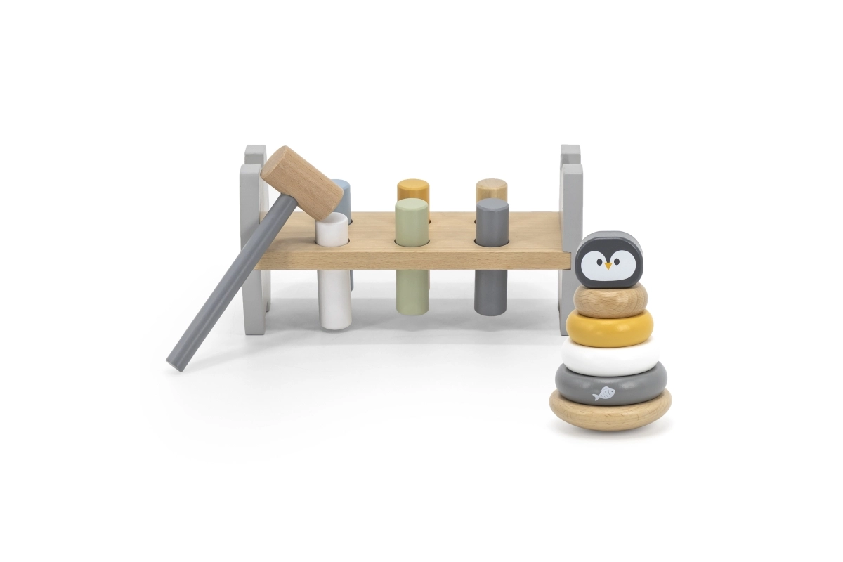 Tutvu Viga PolarB sarja imelise komplektiga, mis sisaldab kahte pastelse tooniga puidust mänguasja: õppepüramiidi ja pingviiniga haamrimängu. Need mänguasjad pakuvad mitte ainult lõbu, vaid aitavad kaasa ka lapse oluliste oskuste arengule.