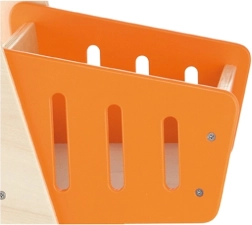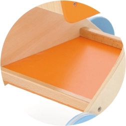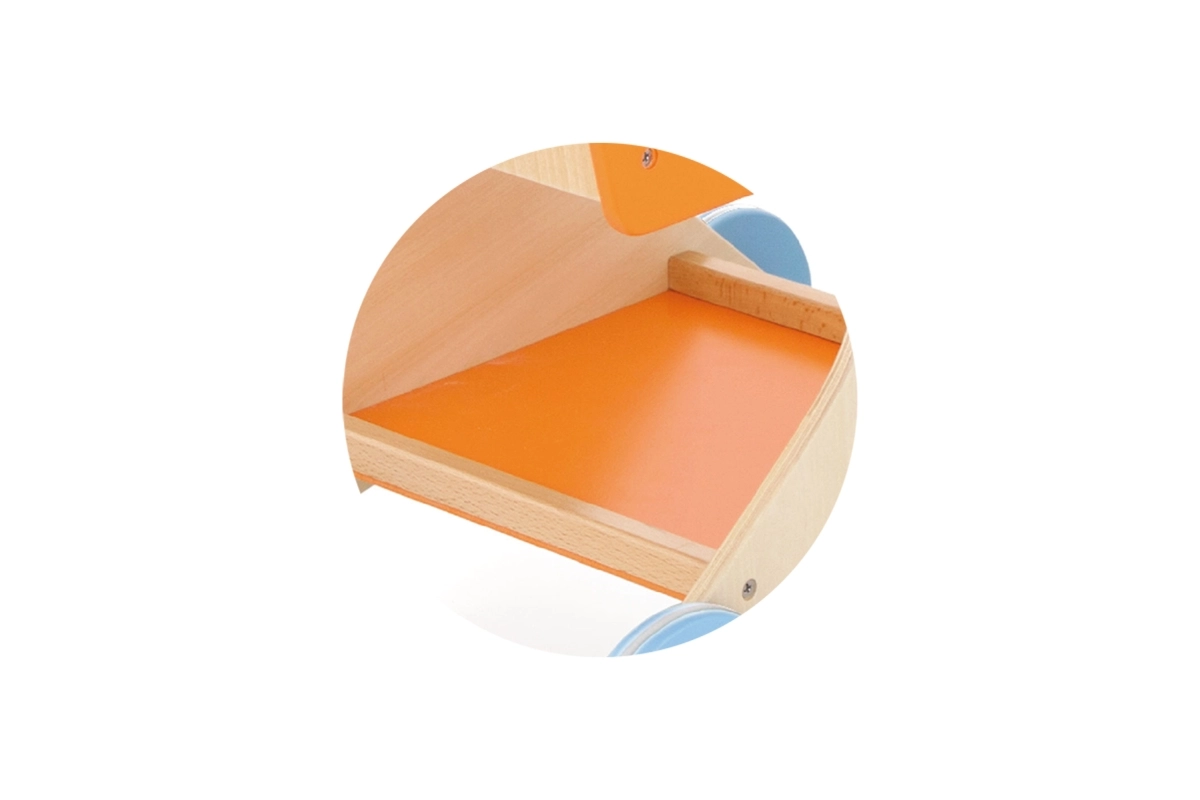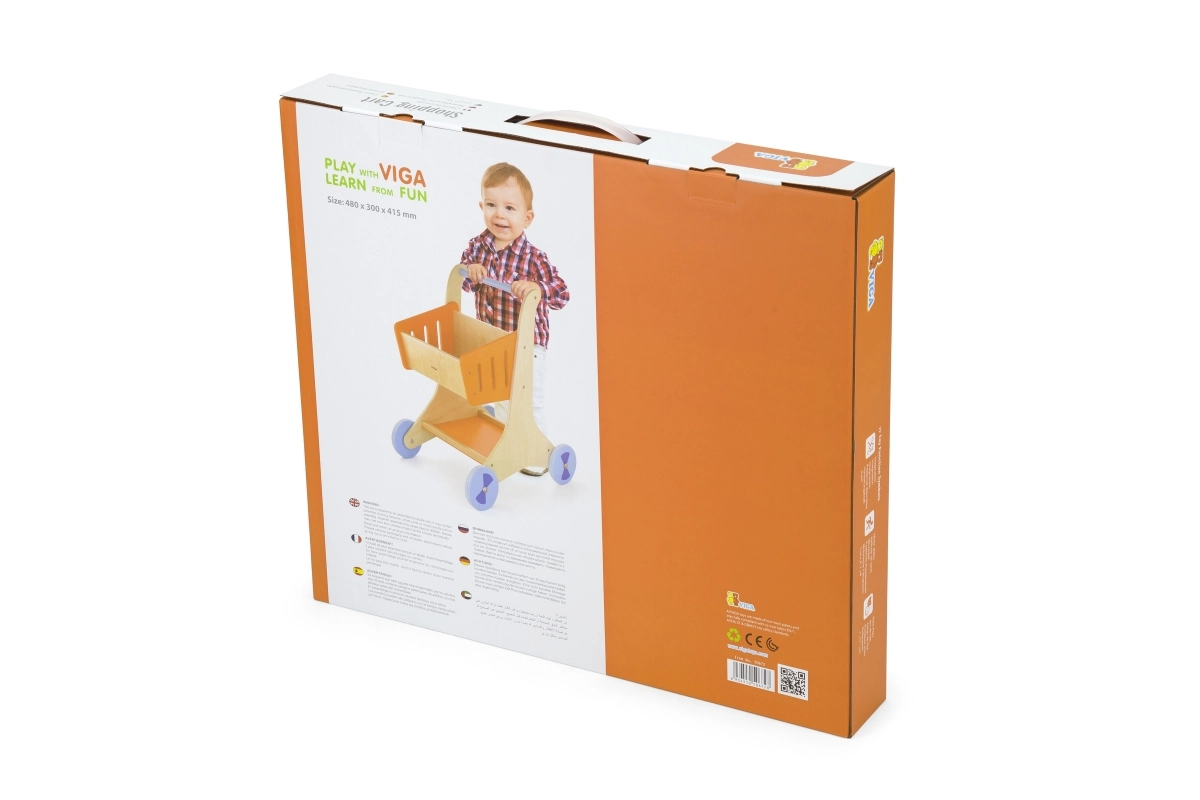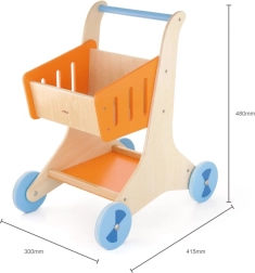 Läbimõeldud mõõdud u 41,8 × 48 × 30 cm tagavad mugava lükkamise ja piisava ruumi korvis. Kvaliteetne teostus loodusliku puidu ja erksate värvide koosluses arendab meeli ja muudab käru atraktiivseks lisandiks lastetuppa.