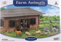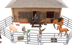 - Tall, aedik, 2 farmeri figuuri, 5 looma (hobune, vars, siga, part, küülik), lisatarvikud (nt hangud)