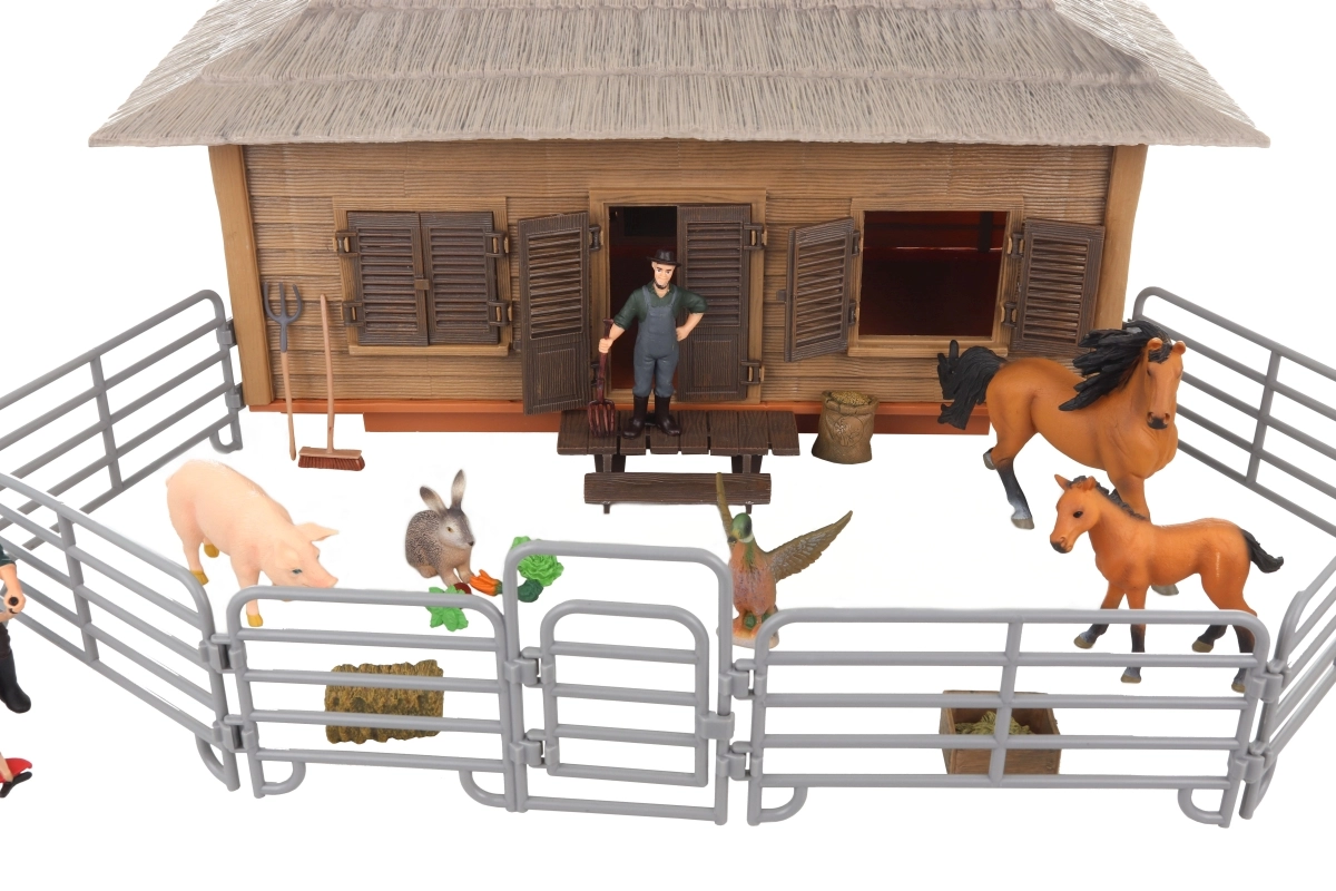 See detailselt kujundatud laste farmikomplekt pakub tunde loovat mängurõõmu. Lapsed saavad ehitada oma väikese majapidamise talli, aediku ja farmeri figuuridega, hoolitseda loomade eest ning välja mõelda lõputuid lugusid maaelust.