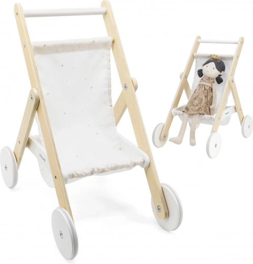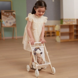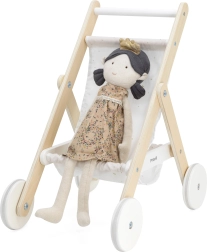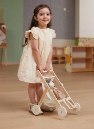 Paku lastele realistlikku rollimängu vanematena elegantse puidust nukuvankriga. See ühendab ajatult kauni disaini, kvaliteetsed materjalid ja turvalise teostuse, et iga “väljasõit” nukuga oleks mugav ja vaikne. Rataste kummist jooksupinnad vähendavad põrandamüra ja parandavad stabiilsust esimestel sammudel.