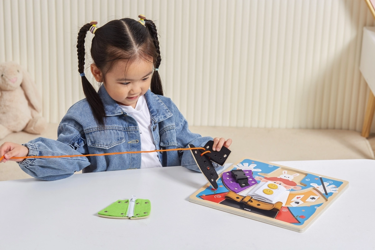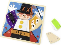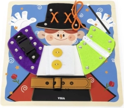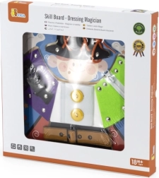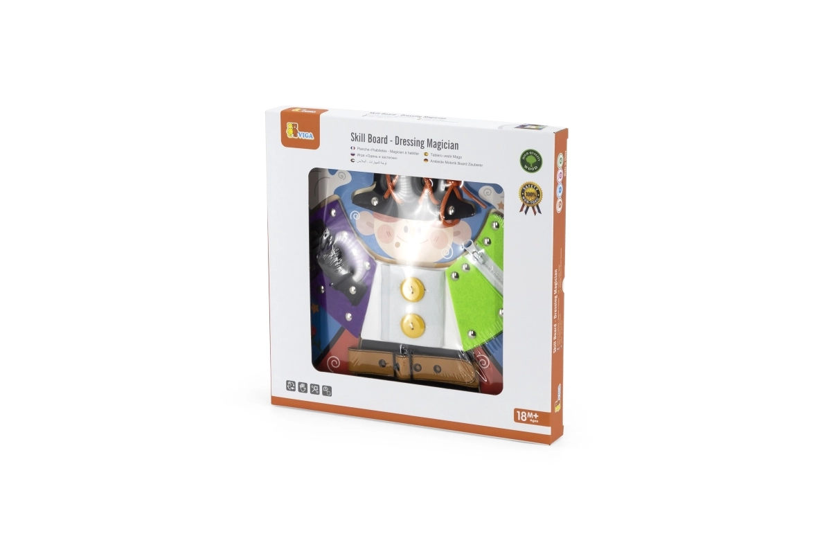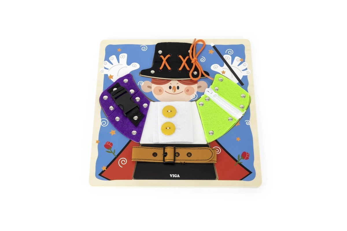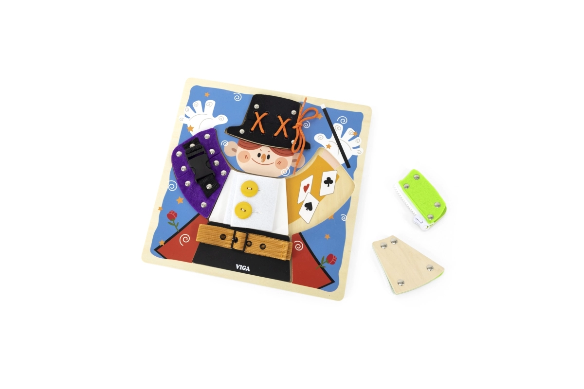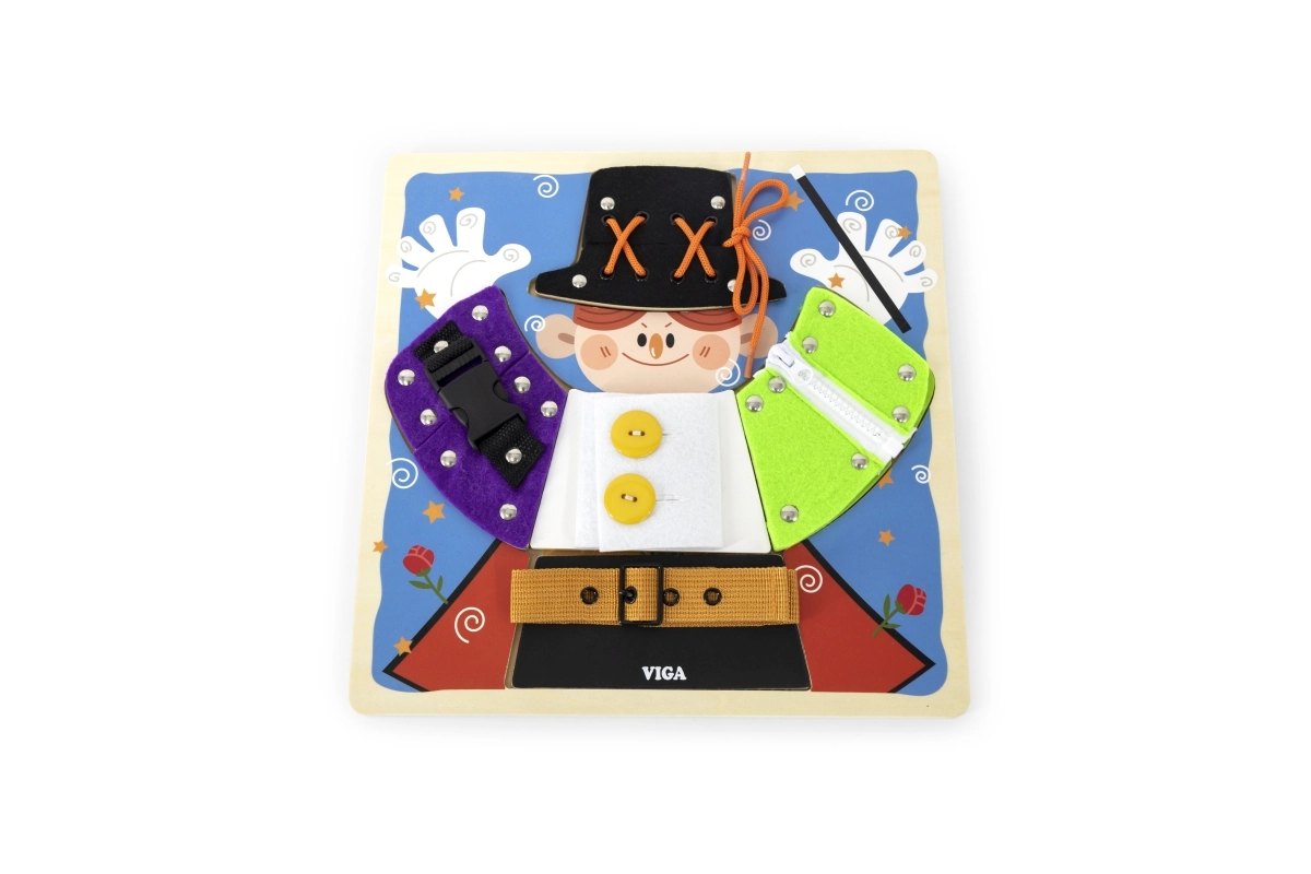 Lõbus VIGA puidust tahvel väikese võluri motiiviga õpetab lastele alates 18. elukuust riietumise ja enesehoolduse aluseid. Mängides harjutatakse tõmblukke, nööpe, trukke, pandlaid ja paelu, arendatakse peenmotoorikat, silma–käe koordinatsiooni ning iseseisvust. Riiete all peituvad lisaks võlumaailma elemendid, mis pakuvad lõbusat mälutreeningut.