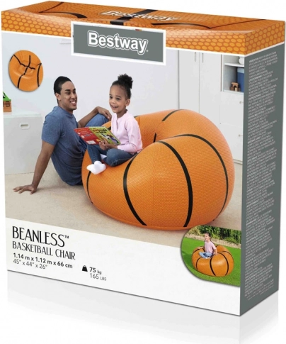 Stiilne BESTWAY korvpalli kujuline täispuhutav tugitool toob mugava istumise ja sportliku disaini lastetuppa, mängutuppa või aeda. Tänu kergemale materjalile ja lihtsale täispuhumisele saad selle kiiresti kasutusvalmis ning sama lihtsalt ka ära panna. Ideaalne lõõgastumiseks, mängude mängimiseks, mängude ja võistluste jälgimiseks ning sõpradega ajaveetmiseks.