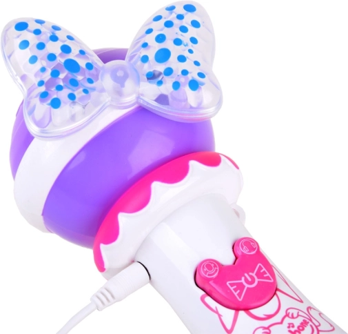 Laste karaoke-mikrofon täidab väikeste tähtede unistuse oma esinemisest. See pakub salvestamist ja taasesitamist, MP3-sisendit, 5 häälemuutuse efekti ning valgusefekte helendava lipsu ja kuuliga. Suurepärane interaktiivne mänguasi laulmiseks, muusikamängudeks ja loovuse arendamiseks.