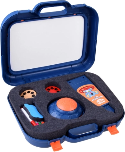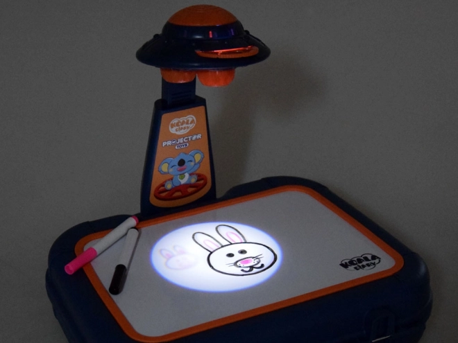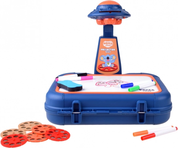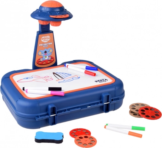 Kohver joonistuspinnaga, projektor-lambike, reguleeritav õlg, 6 pildikettaga šablooni, kustutussvamm ja 6 markerit.
