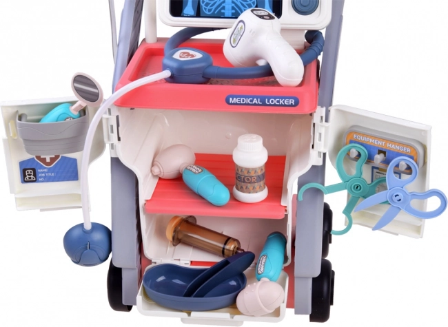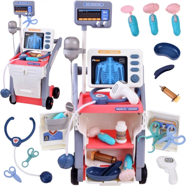 Komplekti kuuluvad ratastega käru, stetoskoop, tilguti, termomeeter, otoskoop, neuroloogiline haamer, süstal, peegel ja veel palju muud.