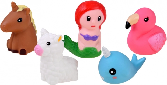 Komplekt sisaldab viit erinevat tegelast, nagu näiteks merineitsi, ükssarvik ja teised põnevad olendid.