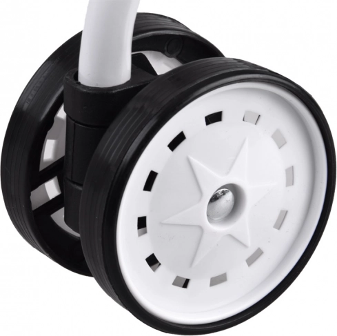 Praktiline konstruktsioon pöörlevate topeltratastega võimaldab sujuvat manööverdamist erinevatel pindadel. Stiilne kangas lisab mängule särtsu ja sobitub suurepäraselt iga lapse varustusega.