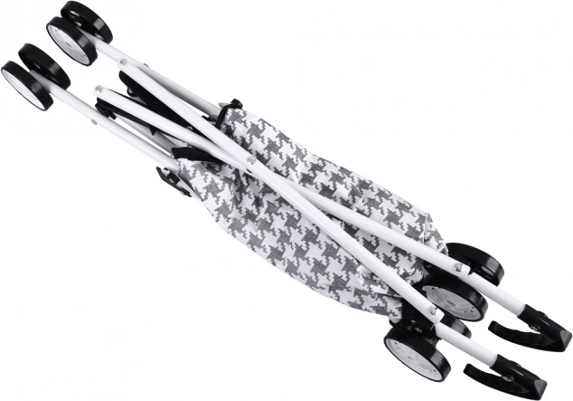 Kerge ja stabiilne nukukäru elegantses pepito-mustris rõõmustab iga last. Tänu metallraamile, sujuvalt veerevatele topeltratastele ja turvarihmale on mäng lihtne ja turvaline. Käru volditakse kiiresti, on kerge juhtida ning sobib suurepäraselt igapäevaseks mänguks nii toas kui õues.