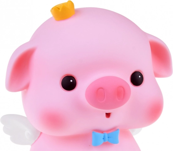 Roosa põrsake valgete tiibade, sinise kikilipsu ja kollase krooniga toob naeratuse näole ning on samal ajal stiilne dekoratsioon lastetoas või kirjutuslaual.