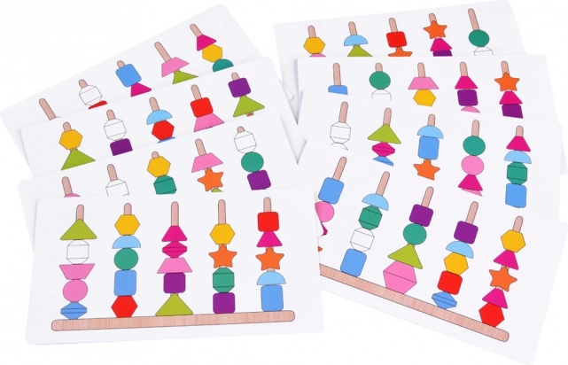 Erksad värvid ja erinevad kujundid õpetavad eristama ja sortima. Mustrikaardid arendavad loogikat, järjekorra tajumist ja kannatlikkust.