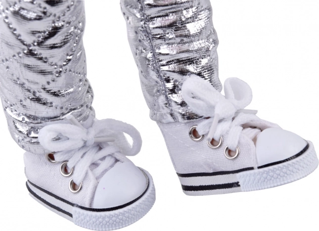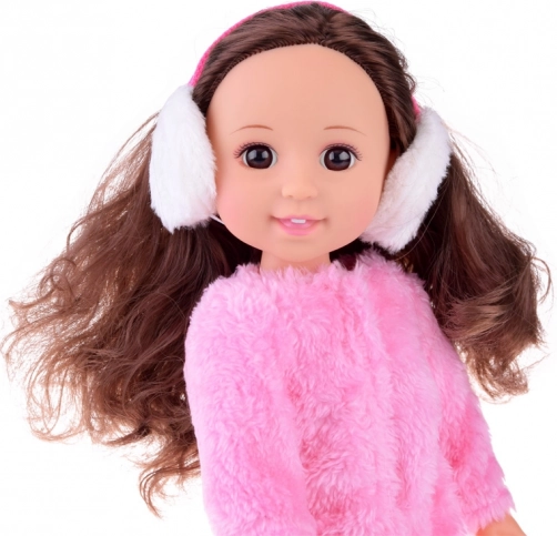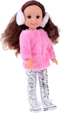 Nukk on riietatud soojasse talverõivastusse: pehme roosa kasukas, stiilsed hõbedased püksid ja valged paeltega tossud, mida täiendavad talvised kõrvaklapid täiusliku välimuse jaoks. Suurepärane valik peenmotoorika, fantaasia ja sotsiaalsete oskuste arendamiseks.