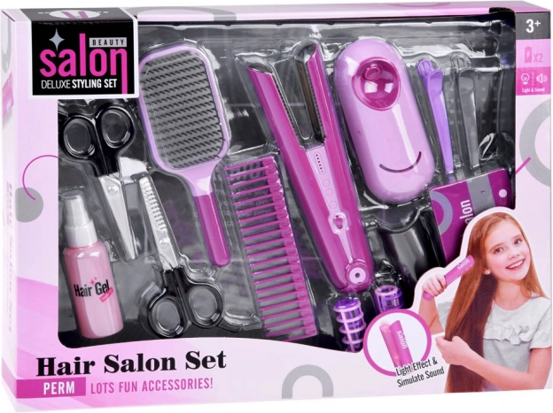 Olete kunagi unistanud omaenda juuksurisalongist? Nüüd võib see unistus saada teoks tänu sellele suurepärasele laste juuksurikomplektile. Julgusta oma lapse loovust ja arenda tema soengute stiliseerimise oskusi. Komplekt võimaldab luua imelisi soenguid nukkudele, emale, õele või vanaemale.