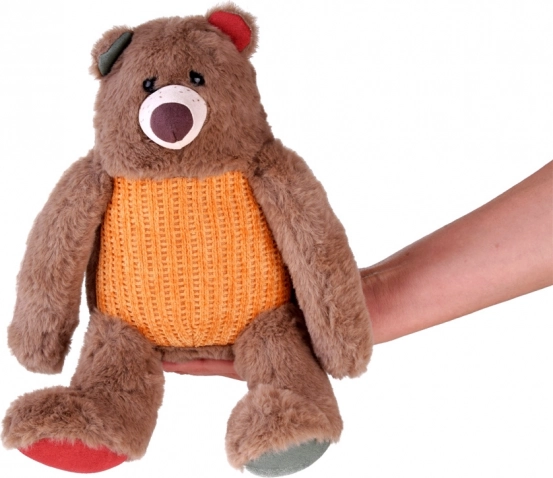 Armas pehme mängukaru Teodor on täiuslik kaaslane nii väikestele kui ka suurematele lastele. See pehme pruun karu sobib suurepäraselt kallistamiseks ning annab tunde mugavusest ja turvalisusest. Tema erksad värvid – oranž kootud kampsun, rohelised ja punased kõrvad ning käpad – annavad mänguasjale rõõmsa ilme.
