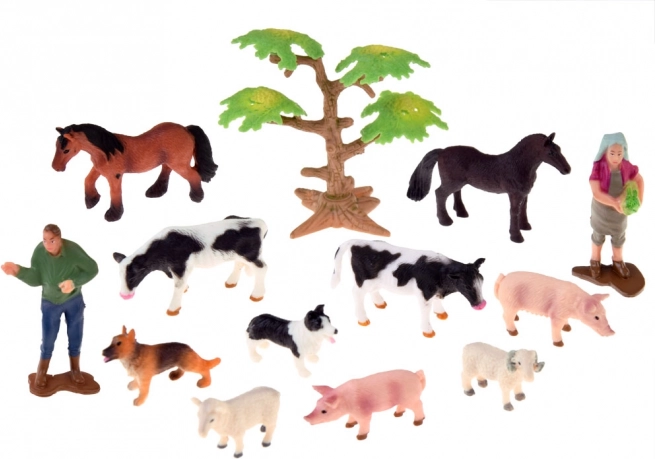 Hobused, vasikad, põrsad, lammas jääraga ja koerad, lisaks talunik ja perenaine – kõik valmis söötmiseks, hoolduseks ja valveks aedikutes.