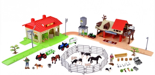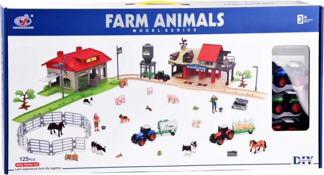 Avastage rikkalikult varustatud laste farmimängukomplekt 125 osaga, sealhulgas 3 traktorit haagistega, tallid ja hooned, loomad ning rohkelt realistlikke lisatarvikuid. Aedikute, tööriistade ja sööda abil pakub see värvikas plastfarm loovat ja harivat mängu väikestele talunikele.