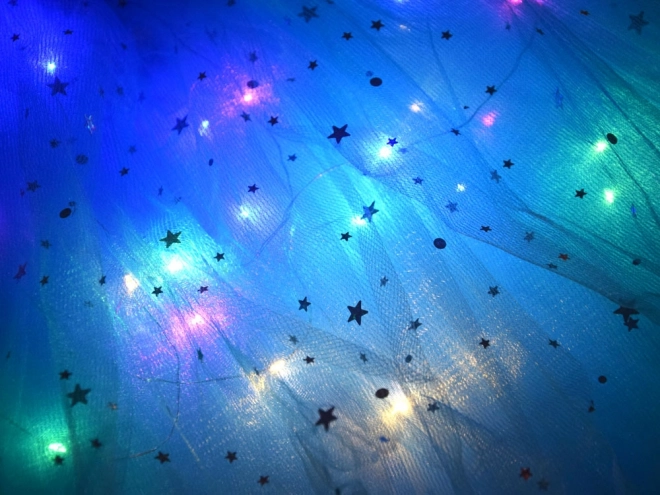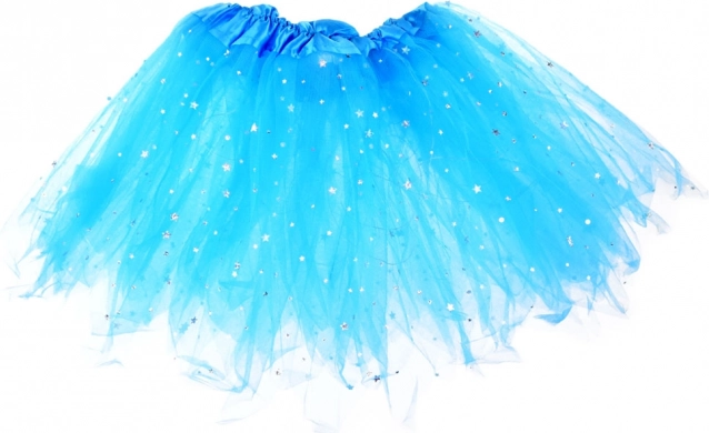 Sinine tüllseelik, kaunistatud tähtedega ja LED-tulukestega, lummava välimuse loomiseks. Elastne vöökoht tagab mugava kandmise.