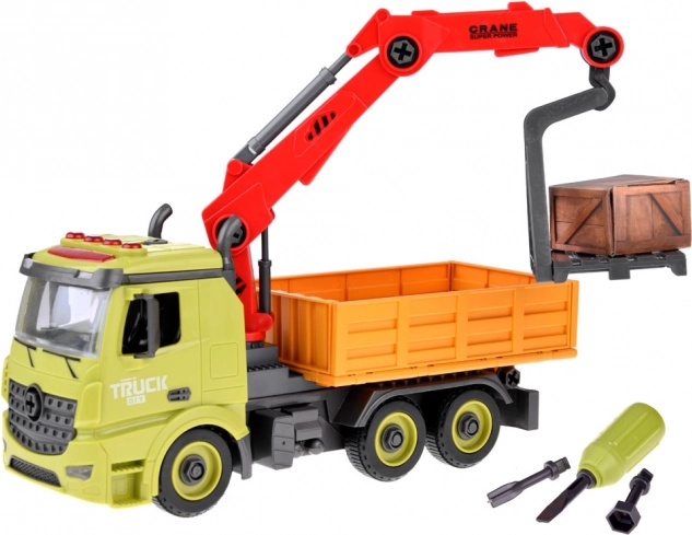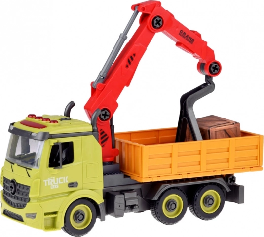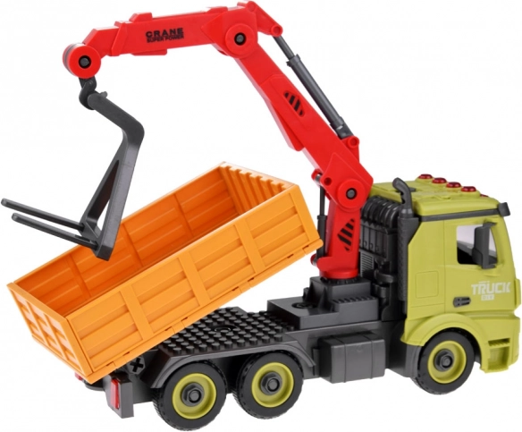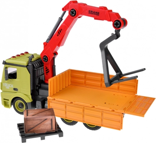 See erksates värvides plastist kraana-veok on valmis tundideks lõbuks. Pöörlev ja väljaulatuv nool tõstab kasti, avatav külgsein lihtsustab pealelaadimist ning hõõrdejõul veoskeem tagab sujuva stardi ilma patareideta. Interaktiivse mängu jaoks on lisatud heliefektid – mootori käivitus, signaal, tagurdustoon ja vilkur.