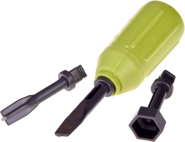 Kaasasoleva kruvikeeraja ja vahetatavate otsikutega saavad lapsed sõiduki hõlpsalt osadeks võtta ja taas kokku panna. Suurepärane viis osavuse ja loogika arendamiseks.