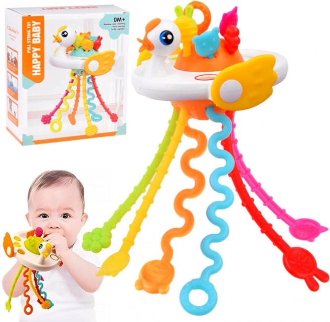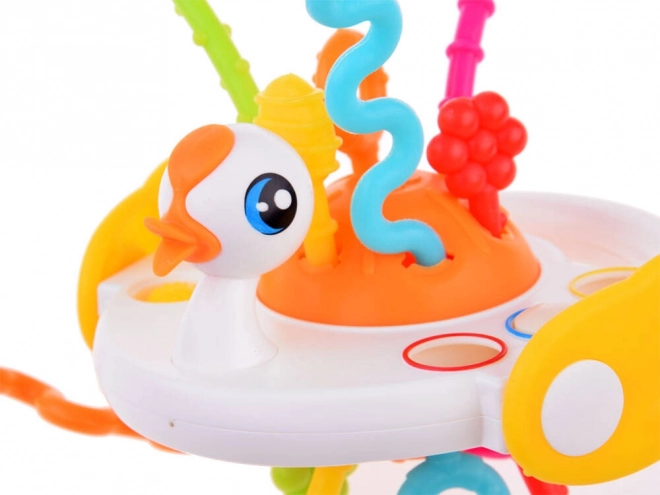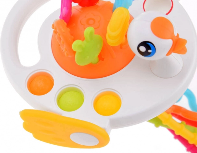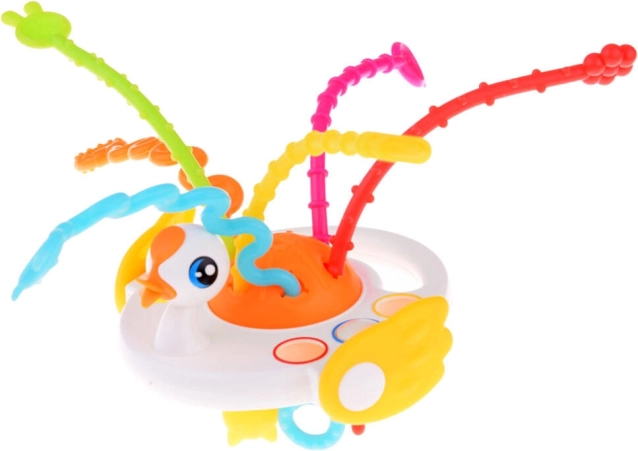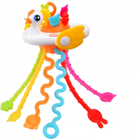 See värviküllane luige kujuline sensoorne mänguasi toetab teie beebi meelte ja oskuste loomulikku arengut. Tänu erinevate pindade, pehmete nuppude ning heli ja vibratsiooniga tõmmatavate nööride kombinatsioonile avastavad lapsed uusi stiimuleid, harjutavad haaret ja tugevdavad käe-silma koordinatsiooni.