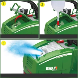 Suurimaks tõmbenumbriks on realistlik suitsufunktsioon – lisa kaasasolevast pudelist veidi vett, aktiveeri suits puldist ja summutist väljub õrn valgustusega aur. Liikuv lõikuspäis on pöörleva rootoriga, seda saab tõsta ja langetada, väljaviske toru pöörleb 360°. Tagasild on veetav ja võimaldab kokkujooksu seadistamist. Laiad kummirattad tagavad stabiilsuse ja haarduvuse.