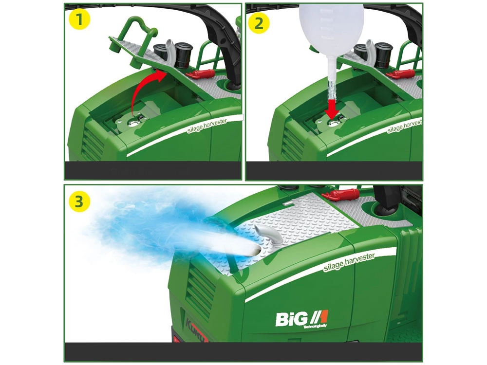 See detailne kaugjuhitav kombain pakub lastele autentset saagikoristuse kogemust. Käivitamisel kostavad mootori käivituse ja tühikäigu helid, sõites ette süttivad esituled ja majakas, tagurdamisel kõlab signaal ja tuled vilguvad. Ühe nupuvajutusega saab valgus- ja heliefektid välja lülitada.