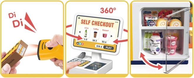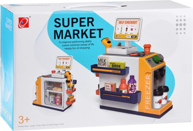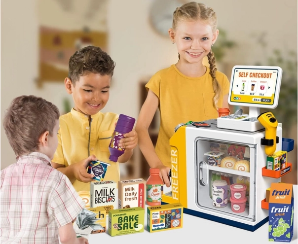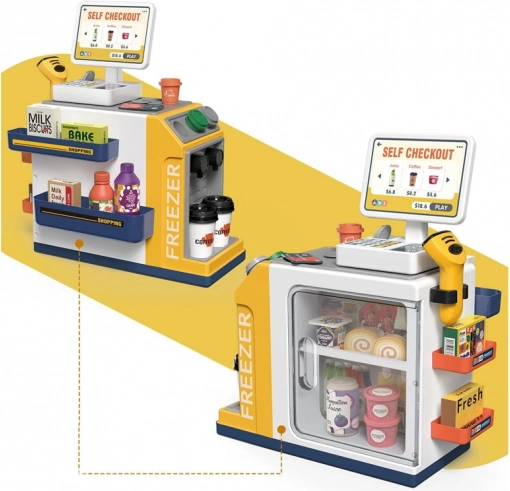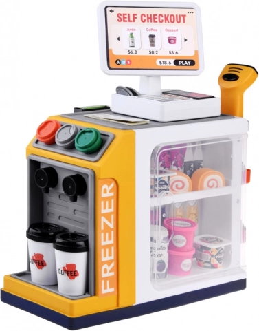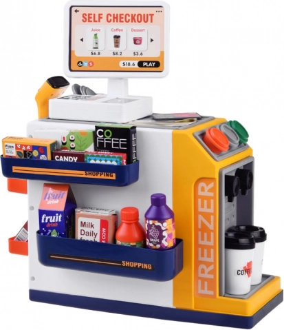 See realistlik iseteeninduskassa koos kohvinurgaga muudab toa väikeseks supermarketiks. Lapsed saavad proovida klientide teenindamist, kohvi valmistamist, kauba skaneerimist ja maksmist kaardi või „sularahaga“. Integreeritud sügavkülm/külmik magustoitudele ja jookidele, värvilised nupud ja ekraan loovad ehtsa kogemuse.