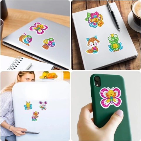 Värvilisi ja sädelevaid kleebiseid saab kasutada erinevatel esemetel, sealhulgas sülearvutitel, külmkapitel või telefonikestel.