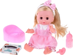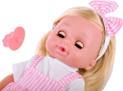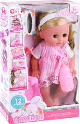 Nukk on riietatud kaunisse valge-roosasse lillemustriga kleiti ja valgesse pluusi. Tal on kusemisfunktsioon, mis aitab lastel õppida beebi eest hoolitsemist. Realistliku tunde loob kõva kummist pea, käed ja jalad.