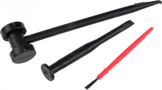 Komplektis on plastist haamer, peitel ja pintsel – ideaalsed õrnaks kaevamiseks ja leitud aardete puhastamiseks.