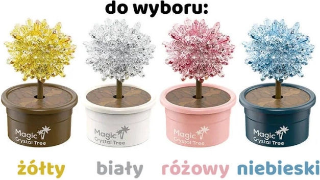 Erinevad kristallpuude värvivariandid muudavad eksperimendi kauniks dekoratsiooniks. Kui konkreetset tooni ei valita, saadetakse värv juhuslikult.