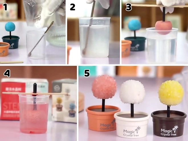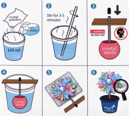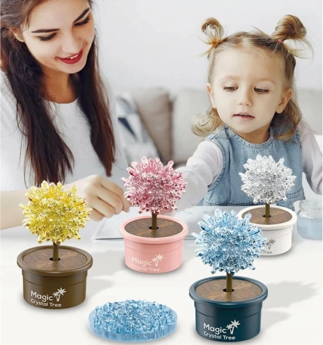 See hariduslik STEM-eksperiment võimaldab lastel jälgida tegelikku kristalliseerumise protsessi – lahuse ettevalmistamisest kuni kauni kristallkrooni kasvamiseni. Mõne päeva jooksul valmib omanäoline kristallpuu, mis saab toakaunistuseks ja meenutuseks esimesest teaduslikust katsest.
