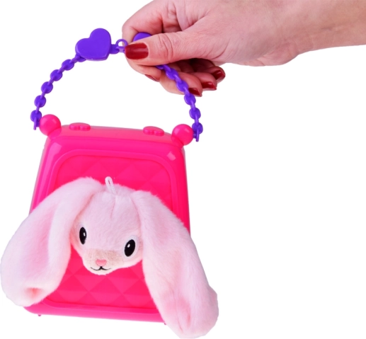 Suurepärane käekott on valmistatud plastist meeldivates toonides ning kaunistatud kolmemõõtmelise dekori ja südamekujulise sangaga. Tänu südamekujulisele avausele piilub käekotist välja jänese pea, mis jätab jalutuskäigul väga lummava mulje. Käekotil on ka südamekujuline trukk-kinnitus, mis rõhutab kogu armsat välimust. Täiuslik lisand igale rõivakomplektile.