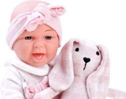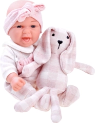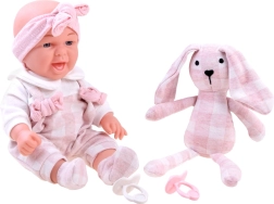 Võluv nukk – beebi roosa-valges komplektis pehme plüüsjänese ja kahe lutiga rõõmustab iga väikest emmet. Nukul on realistlikud jooned, pehmed vahetatavad rõivad ja mõnusad aksessuaarid loovaks mänguks. Ideaalne kingitus fantaasia ja hoolitsusoskuste arendamiseks. Pehmed materjalid, armsa disainiga ja lastele ohutud detailid.