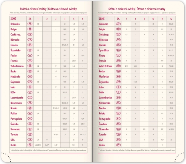 - Tööplaneerija ning pühade ülevaade Tšehhis ja Slovakkias ning rahvusvahelised pühad.