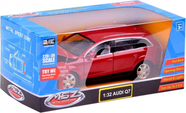 Avastage detailselt teostatud AUDI Q7 mudel, mis pakub tõelist mänguelamust. Uste avamisel või nuppe vajutades aktiveeruvad tuled ja helid – alates signaalist ja mootori käivitusest kuni rütmiliselt vilkuva valgustuseni. Tänu pull back süsteemile piisab, kui tõmmata autoke tagasi ja vabastada – see hakkab ise liikuma.