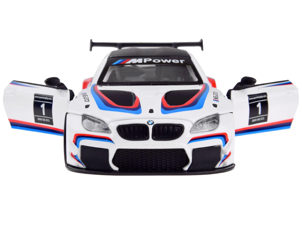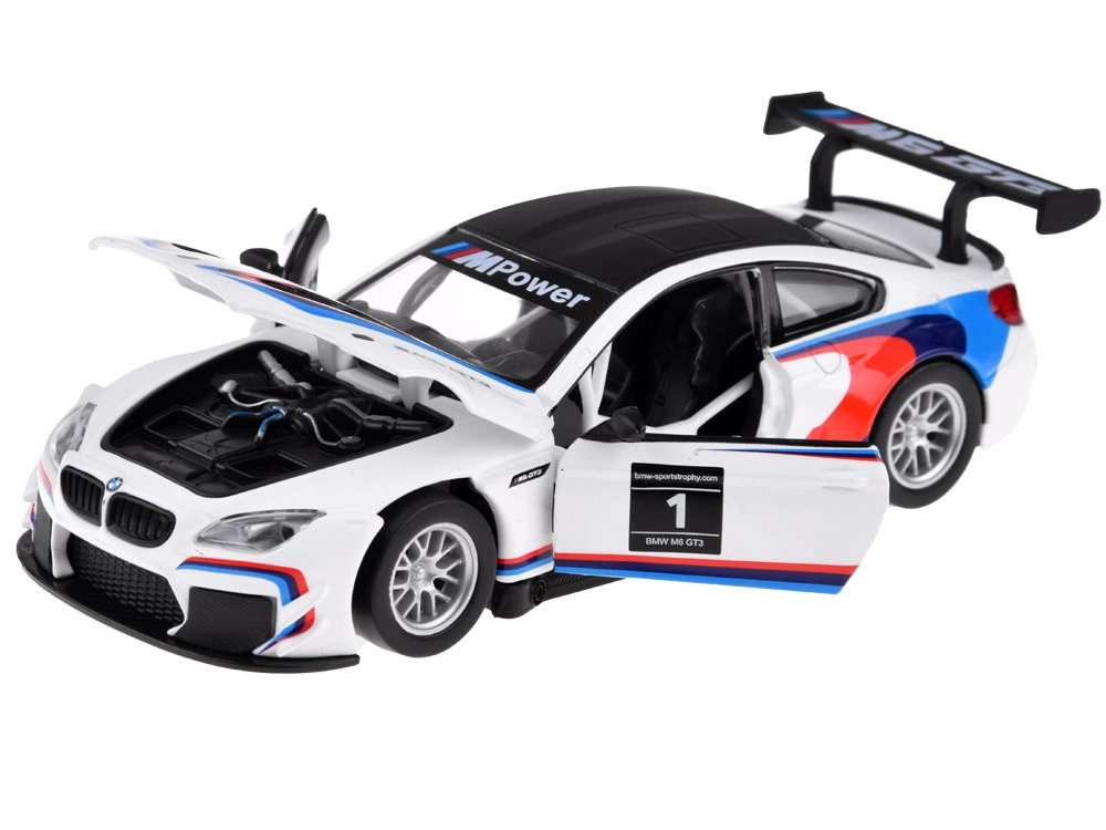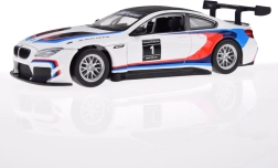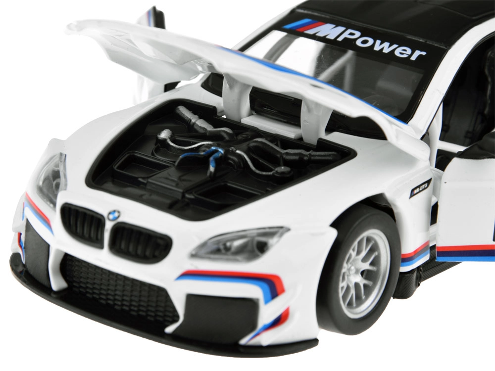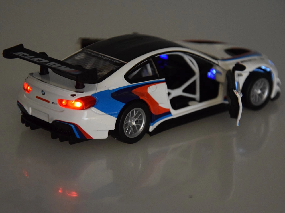 Tõetruu metallist BMW M6 GT3 mudel mõõtkavas 1:32 pakub rõõmu nii väikestele juhtidele kui ka kollektsionääridele. Sellel on valgus- ja heliefektid, avatavad uksed, friktsioonajam (pull‑back) ning kummirattad sujuvaks sõiduks. Patareid on komplektis.